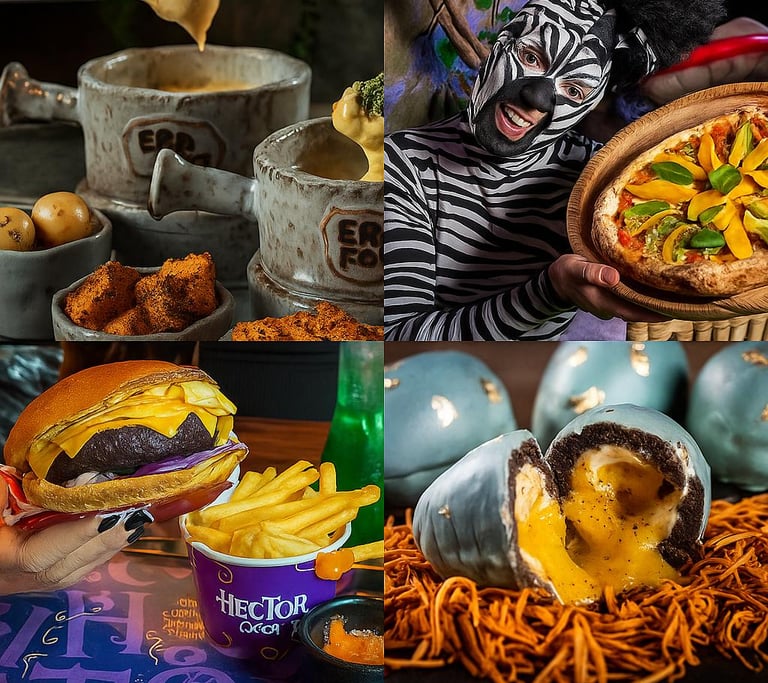 Tu encontra pizzarias e hamburguerias com cenários de selva, magia ao estilo Harry Potter e até fondue temático dos Flintstones.
